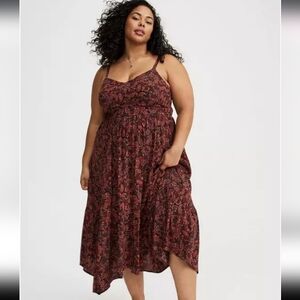 Torrid Hanky Hem Orange Brown Paisley Dress 3X