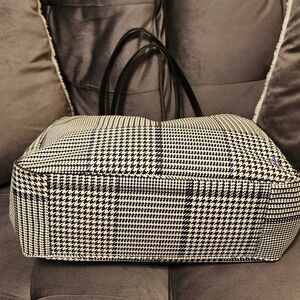 Sophisticated tote with classic houndstooth pattern. Features sturdy handles and spacious interior. Ideal for everyday use.