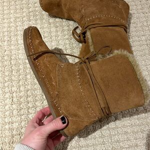 Toms Tan Moccasin Winter Boots with Faux Fur Trim