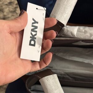 Stylish DKNY tote in a warm tan shade. Perfect for daily use. Elegant and versatile design. BRAND NEW BUT HAD SOME LIFTING OF SUEDE BEAUTIFUL BAG NEVER USED WITH TAGS
