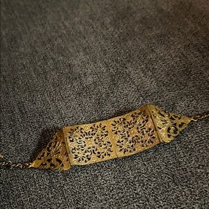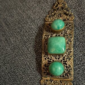 This elegant bracelet features intricate gold detailing with stunning green stones. Perfect for adding a touch of sophistication to any outfit.