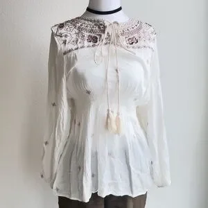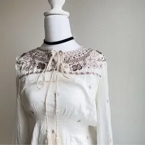 Fate Embroidered White Boho Blouse Size Small