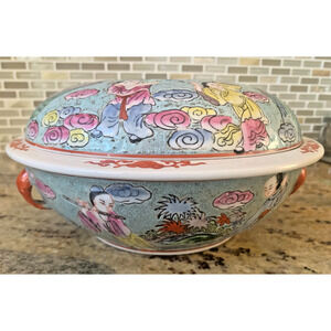 Rose Medallion Antique Chinese Porcelain Export Covered Serving Casserole Dish