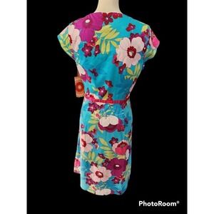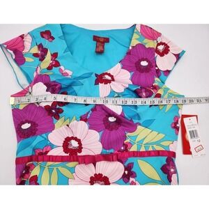 Sangria Womens Dress Size 12 Blue Floral V Neck Short Sleeve Side Zip Lined