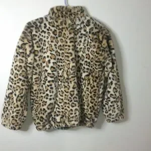 Chic animal print fleece jacket. Perfect for warmth and style.