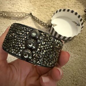 Henri Bendel Onyx and Silver Crystal Cuff