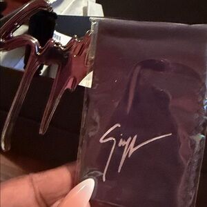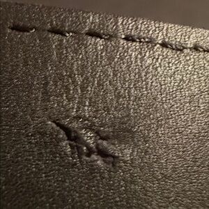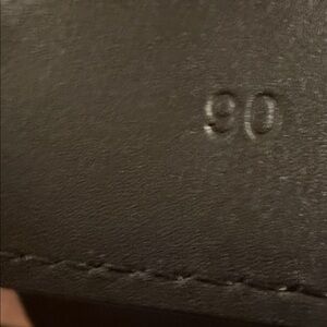 Stylish black belt featuring a silver buckle. Comes with a branded box and dust bag. very quality belt one mark on the inside please see picture