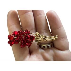 A Dozen Red Roses Vintage Gold Tone Brooch Signed