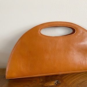 Elegant half-moon shape. Smooth leather finish. Comfortable handle.