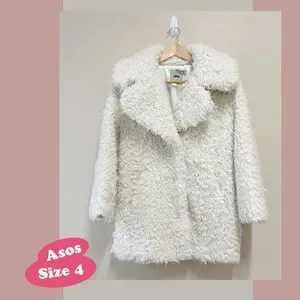 ASOS Faux Fur Teddy Coat Jacket with Snap Closure