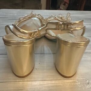 Elegant heels with floral embellishments by Betsey J⭐️ Gold finish for a touch of luxury. Ideal for special events. 3” covered block heel. Box included!