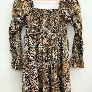 NWT Lilly Pulitzer Beyonca Long Sleeve Smocked in Rattan Walk on the Wild Side
