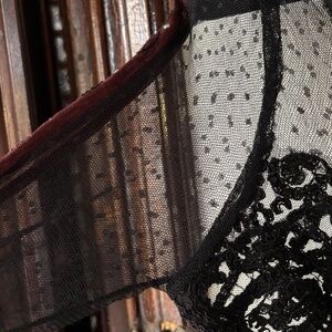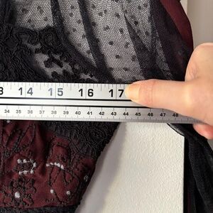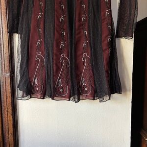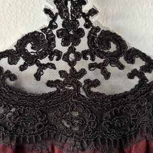 Free People Tough Love Goth Fit & Flare dress in black and burgundy mesh with embroidery.