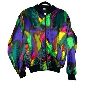 Vintage 80s Psychedelic Artsy Multicolor Bomber Jacket Power Gear OS