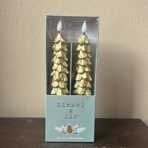 Tinsel & Fir Flameless Taper Candles 2 Pcs LED Christmas Tree Gold with Timer