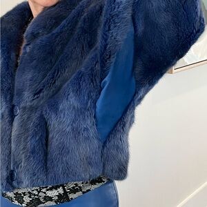 Elegant Blue Teddy Fox Fur Jacket.