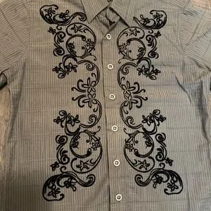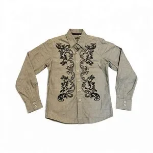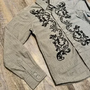 191 Unlimited Boys Button Down Shirt Gray Black Embroidered Western Style Size M