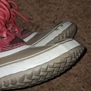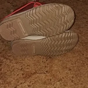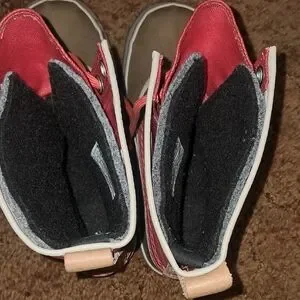 Keep your feet warm and stylish with these red and tan winter boots. Perfect for outdoor adventures.