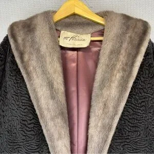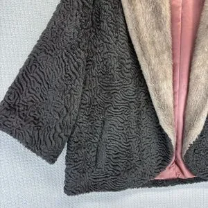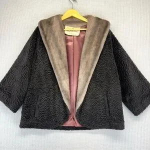 Vintage The Parisian Black Persian Lamb W/ Mink Collar Women's Jacket Med Short
