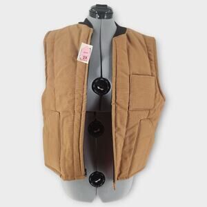 Canvas Insulated Hunting Vest Men's 2X Light Brown Full-Zip Outdoors NWT