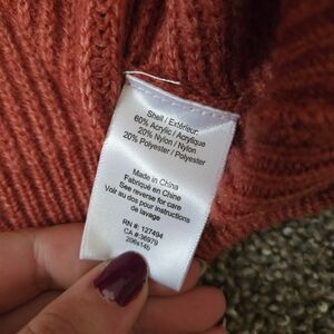 Women's Heart Loom Geometric Tight Knit Burgundy High Crewneck Sweater Small
