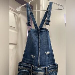 American Eagle Medium Wash Distressed Jegging Overalls Sz 2 Regular NWT