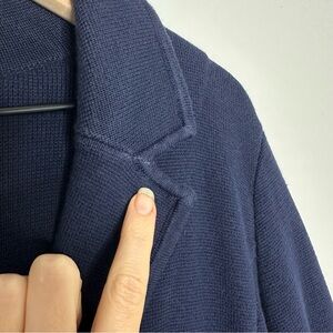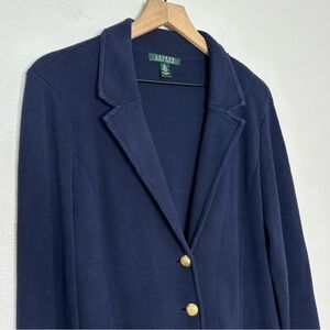Lauren Ralph Lauren 100% Cotton Sweater Knit Blazer Navy Blue XL Preppy Gold