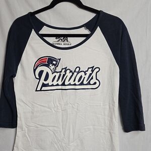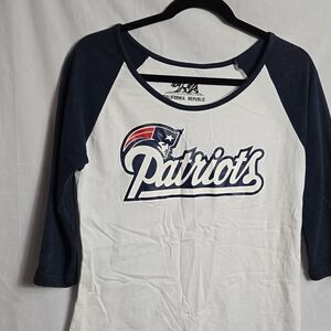 PATRIOTS top.. good used condition.. it's a large but a tight fitting large.. please see measurements.. would probably fit a medium better..