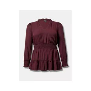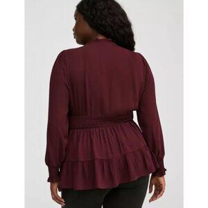 Nearly New Torrid Ruffle Georgette Long Sleeve Tunic Blouse in Winetasting Sz 3x
