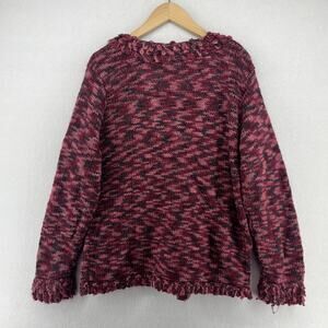 APRIL CORNELL Sweater XL Wool Blend Marled Button Up Cardigan Chunky Fringe Red