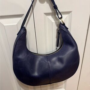 Leather has some scratches as seen in photos otherwise it is in great condition no stains or odors.Meet the crescent-shaped shoulder bag we call Nora An undeniable classic that is extremely comfortable to wear