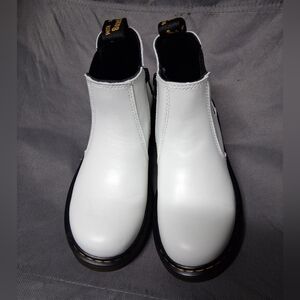 Classic white leather boots with black elastic panels. Durable and stylish for everyday wear.