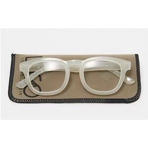 The squared signature frames feature designer details and LOGO imprints near the temples, while the soft case stylishly stores your new look when not in use.