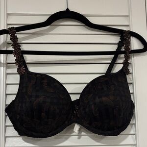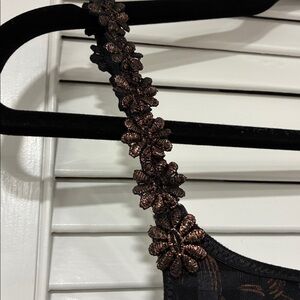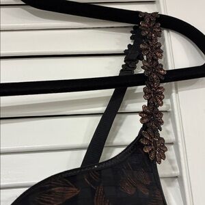 Daisy Bra Black and Brown Floral Bra With Shimmery Goldish Brown Flowers 36D Originally cost $$$140