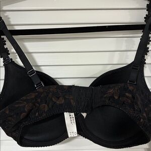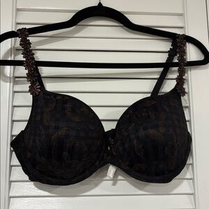 Marie Jo Bra 36D Black and Brown Floral Bra With Shimmery Goldish Brown
