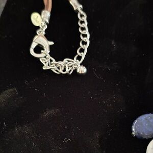 Chico's Brown Leather Necklace with Silver and Gold Charms