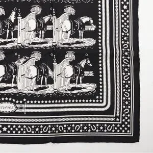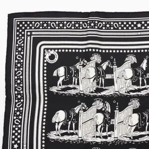 The Hermes Carre 55 Hot To Trot Scarf is a luxurious silk square scarf designed for women. Featuring a sleek black color, this scarf exudes elegance and sophistication. Perfect for adding a touch of high-end style to any outfit, this Hermes scarf is a versatile accessory that can be worn in a variety of ways to elevate your look. Ideal for those who appreciate fine craftsmanship and timeless design, this scarf is a must-have for any fashion-forward individual.