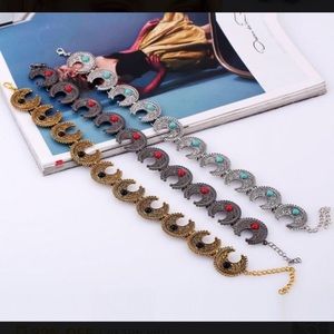 NWT Crescent gypsy moon 🌙 choker in: silver with turquoise bead detail or: antiqued bronze with black bead detail