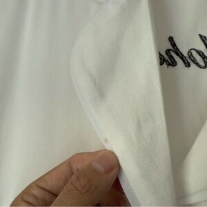 SLEEPER white text embroidered Mrs. Yohannes wifey button up pajama shirt