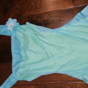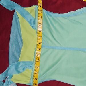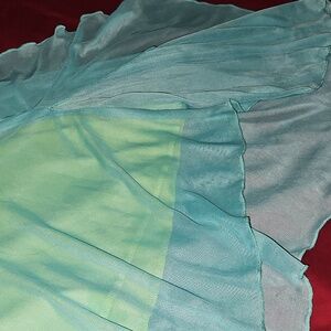 Charming light blue and green dress featuring a floral accent. Perfect for special occasions.