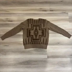 Pendleton Harding Southwestern Geometric Tan Brown Wool Sweater Women’s Medium