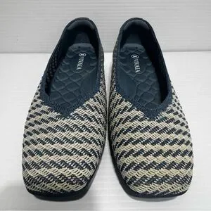 Vivaia Margot Light Blue Square Toes Knit Flats Size 37.5