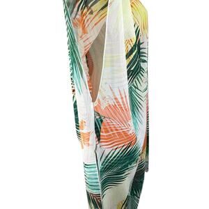 Forever 21 Contemporary Medium Midi Kimono Leaf Print Open Front Semi-Sheer Slit