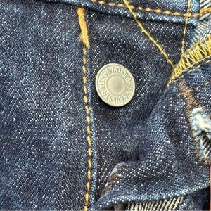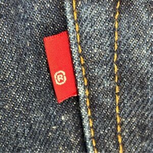 LEVIS JEANS, BUTTON FLY, RED TAG, CIRCLE WITH R ON RED TAB ON BACK POCKET