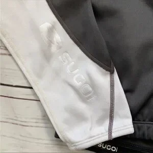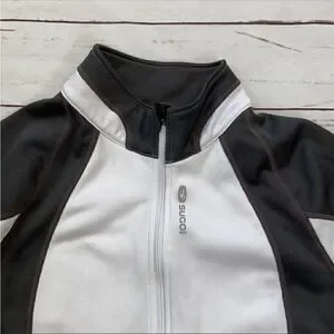 Sugoi Zip Up Jacket. Fleecy on the inside. Has a couple of marks. One on arm and one behind the arm. Please see pictures. Size S