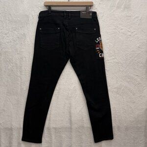 Copper Rivet Jeans Mens 32x30 Black Patchwork Graphic Skinny Denim