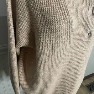 Aerie Beige CozyUp Waffle Button Sweater in a tan color. Size Small NEW