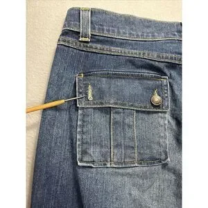 VTG OLD NAVY Jeans Womens 16 Stretch Flare Bootcut Flap Pockets Denim Faded Blue Y2K. FLAW missing 1 button on the back pocket, overall nice preowned condition. See pictures for measurements.