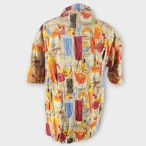 D'em Crazy Hawaiian Button Down Men's XL Floral Tikki Cocktail Design Beachwear