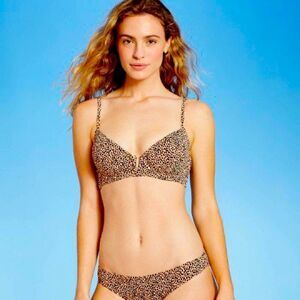 Cheetah print Shade & Shore Light Lift V-wire Ribbed Bikini Top
